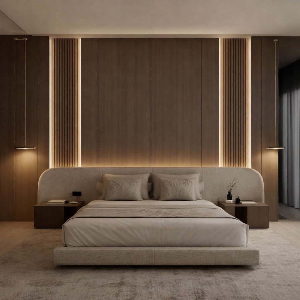 الإضاءة المخفية والدافئة تضيف جمالًا للغرفة.